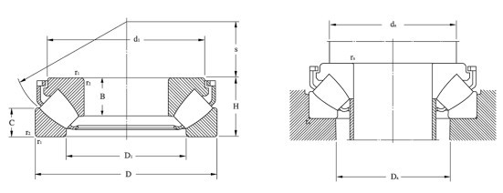 Bearing of this type has two rows of spherical rollers between the sphered raceway in the outer ring and two inner rings raceways inclined at an angle to the bearing axis.According to the difference of the bearing internal structure, there are five types of cages:CA,MA,CC,E and CTN1.Due to the arc center of the raceways in the ourter ring and the bearing center are in the same direction, as a result, shaft flexing and misalignment of the bearing seats are compensated. Bearings of this type can support axial forces in both directions and high radial forces. They are designed for very high load carrying capacity. Bearings with a tapered bore are also available with an adapter sleeve, locknut and tab washer or with a withdrawal sleeve.When shaft bends by force which causes the inclined between the center of inner ring and the center of outer ring,if the inclined degree not exceed 1-2.5,the bearing can work normally.