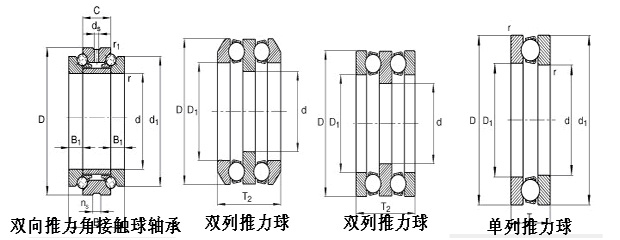 Thrust ball bearings consist of a shaft washer, a housing washer and a ball and cage thrust assembly. The bearings are separable so that mounting is simple as the washers and the ball and cage assembly can be mounted separately.